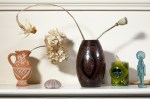 7. But something needed to go into that space below the hydrangea and the urchin (more of a contrast in colour to the background and smaller than the coral) works, I think (fig 11). The resulting kite-shape formed by the jug, daffodil, hydrangea and urchin, matches the triangle formed by the vase, seed pod and the candle (or the kite made with the addition of the seed pod’s shadow, out to the right).