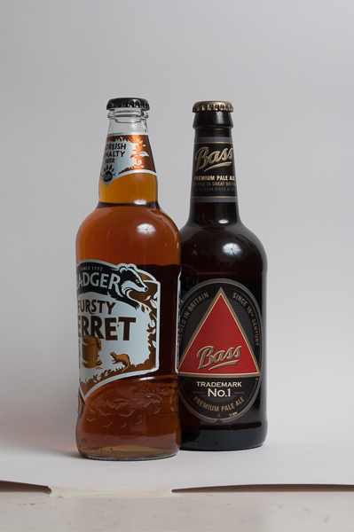 Rejecting buying a packet of Benson & Hedges (twenty = a day and one = a ten minute screen break when I still smoked) as I didn’t want to buy my first packet of fags for 10.5 years, I settled on the change in the recommended maximum alcohol intake back in January when it was reduced from 4 units of alcohol (2 pints)  to 2 units (a single pint). AoP-assignment-2-units-1This seemed to point up some of the artificiality in the way we construct time nicely, so I got a couple of bottles of nice beer and took their portraits (one on its own and then the two together as a couple), using a 55mm manual micro nikkor this time and a flat white card backdrop curved into an L-shape against the wall. Lighting was again from a flash diffused through an umbrella but this time with more effort being made to block reflections in the glass than to bounce back light to fill in the shadows, I haven’t included contacts here as the main process simpy consited of getting the balance of the light right and excluding the reflections. No compositing was involved in the making of this pair of pictures composed from the off to work as 4:5 portrait ratio prints.