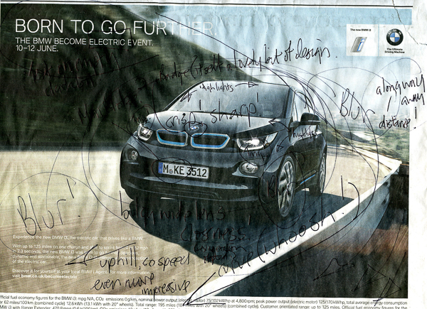 Rip out an advertising image from a newspaper supplement and circle and write on as many parts of the image as you can. Comment on what it is, what it says about the product and why you think it’s there.