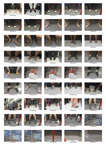 All three rucksack pictures have quite interesting arrangements of feet within their un-cropped frame. The fixed lens on the X100 doesn’t isolate a single pair of feet in the frame, so pretty much all of the pictures had other people’s feet to the sides. This was not something I wanted for my eventual typology, however attractive the effect. I began to work with the pictures that remained.