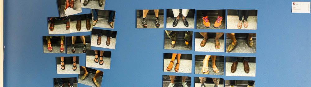 For the next fortnight (the two weeks running up to our break in Orkney) I took pictures of the shoes worn by everyone who sat opposite me on my journeys to and from work. If I wanted to compile a decent typography, I needed either twelve (three rows of four) or fifteen (five rows of three) subjects to make up a nice grid of variations. I was doing rough edits of the pictures each evening to determine what worked and what I still needed to picture each evening and this fed into the next day’s shooting.