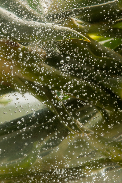 v – Undiffused late afternoon sun shining through the jug, creating reflection on the surface of bubbles in the water which had collected on the inside of the jug the flowers were standing in. The lens used was a Micro Nikkor 55mm 1:3.5 prime macro lens shut down to f16 with an exposure of 1/8″. The picture has been rotated 90 degrees from landscape to portrait to match the others in the assignment.