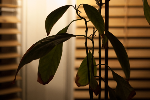I put the idea on hold, while I tried to think of other more easily isolatable subjects, coming up with a typography of old Russian cameras – again, good shapes and nice textures but not a lot of colour – a battered old pair of shoes and an avocado plant, grown from a stone and now showing some nice structure for both the form and shape pictures, good textures on the leaves and trunk/stem and also a variety of colour in the leaves which contrasted nicely with the soil in the pot and the pot itself.